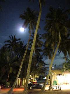 Friday morning we slept in as late as the morning heat allowed. Once our hut started baking we donned our swimsuits and headed down the palm tree-lined path for breakfast. A thatched roof shielded the picnic tables from the sun; the open-air restaurant provided the perfect spot from which to observe the activity along the shore. While we enjoyed a scrumptious vegetable omelet and some truly amazing fresh-baked bread, we watched the fisherman untangle their webs of nets and marveled at the rickety, wooden boats bouncing in the waves.